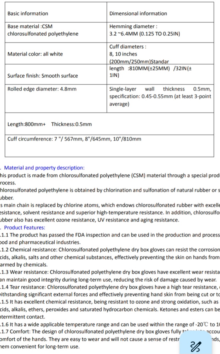 ابعاد این دستکش ها قطرهای200mm و 250mm و طول 800mm می باشد